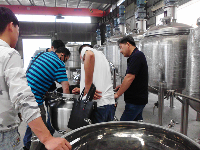 在6月18日下午上海客户来看不锈钢压滤釜压滤槽